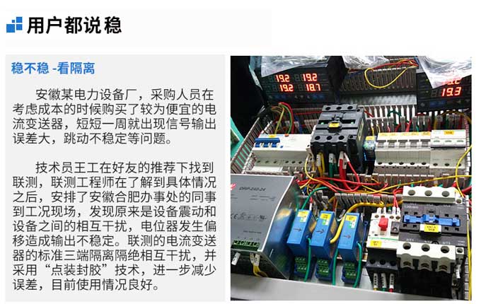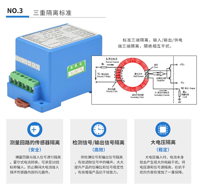 三相電壓變送器采用新型電磁隔離,三相三角形接法交流電壓輸入,用于測(cè)量三相三角形接法交流電壓,特別使用于工頻50Hz正弦波三相三角形接法交流電壓,性能/價(jià)格比,耗電損,體積小,重量輕,安裝簡(jiǎn)便,測(cè)量電壓直接輸入,廣泛用于測(cè)量三相三角形接法交流電壓的場(chǎng)所。