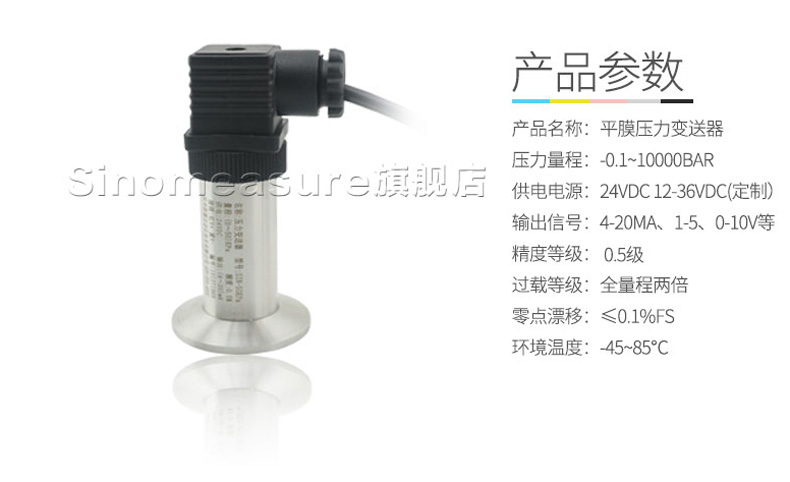 SIN-P350衛(wèi)生平膜型壓力變送器,衛(wèi)生平膜型液位變送器是測量端采用特殊堅(jiān)固處理的齊平隔離膜片。結(jié)構(gòu)緊湊、耐腐蝕,抗震動、抗微粒沖擊、寬范圍溫度補(bǔ)償。膜片采用316L不銹鋼材料,特別適用于醫(yī)療、食品行業(yè)有衛(wèi)生要求的,粘稠流體壓力和液位測量,解決了結(jié)垢,堵塞,清潔衛(wèi)生等問題。高精度的信號處理電路位于將傳感器輸出信號轉(zhuǎn)換為標(biāo)準(zhǔn)輸出信號,可直接與計(jì)算機(jī)、控制儀表、顯示儀表等相連。采用一體化全不銹鋼結(jié)構(gòu),經(jīng)過多次不銹鋼焊接,實(shí)現(xiàn)了全固態(tài)設(shè)計(jì),安裝方便。廣泛應(yīng)用于食品、醫(yī)藥、衛(wèi)生及釀酒工業(yè)等部門。